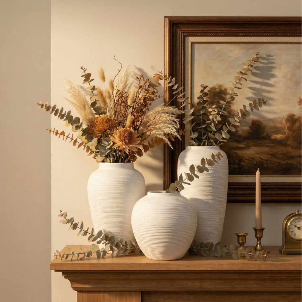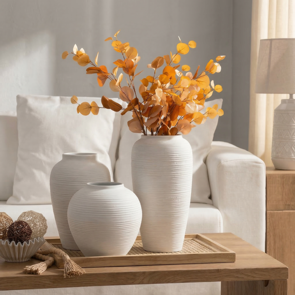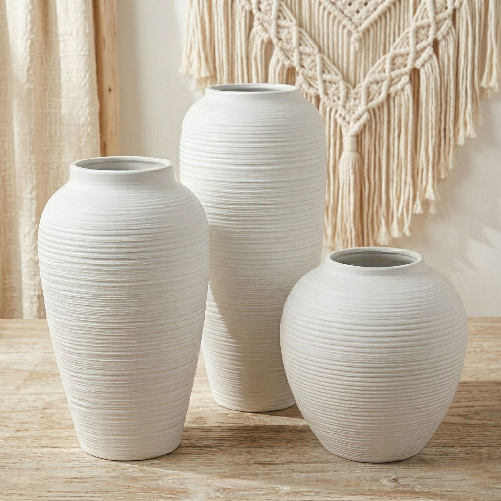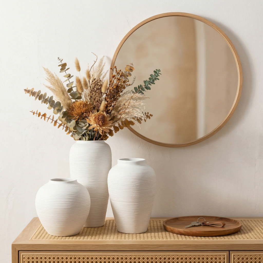 Our vases blend modern farmhouse warmth with Japandi minimalism, creating a harmonious aesthetic that fits diverse interiors.